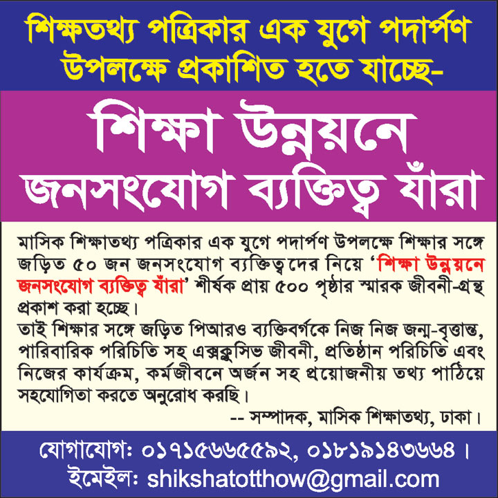 ইমেইল: shikshatotthow@gmail.com (নিউজ এন্ড ভিউজ), ad.shiksha2008.gmail.com (বিজ্ঞাপন)